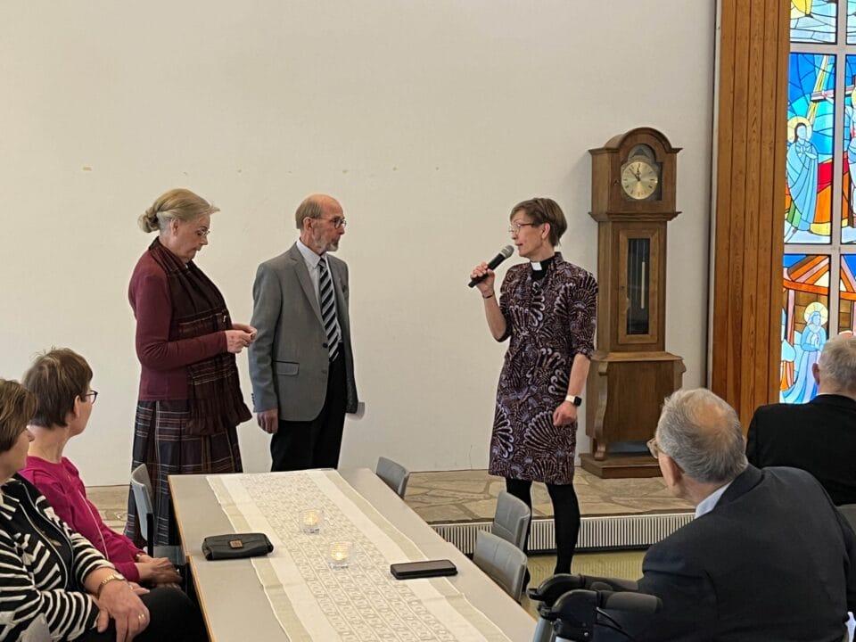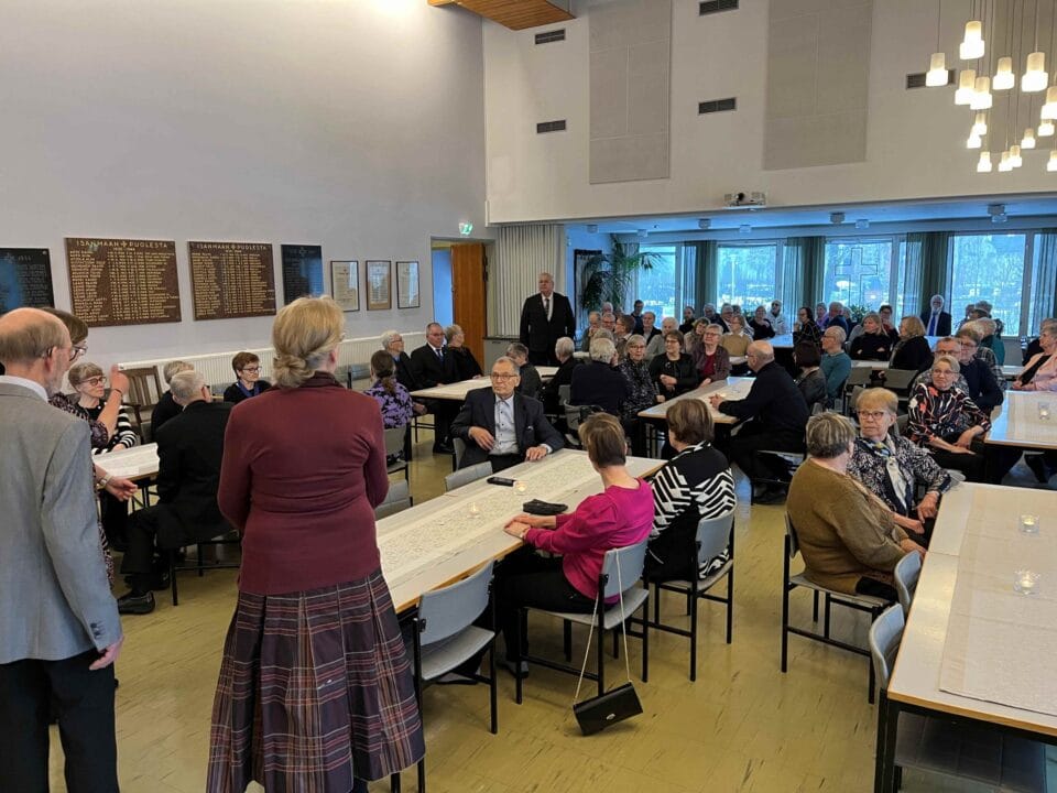 Jumalanpalveluksen jälkeen juotiin kirkkokahvit Kalannin seurakuntakodissa ja tutustuttiin Kalannin uuteen kappalaiseen Liisa Kuuselaan.